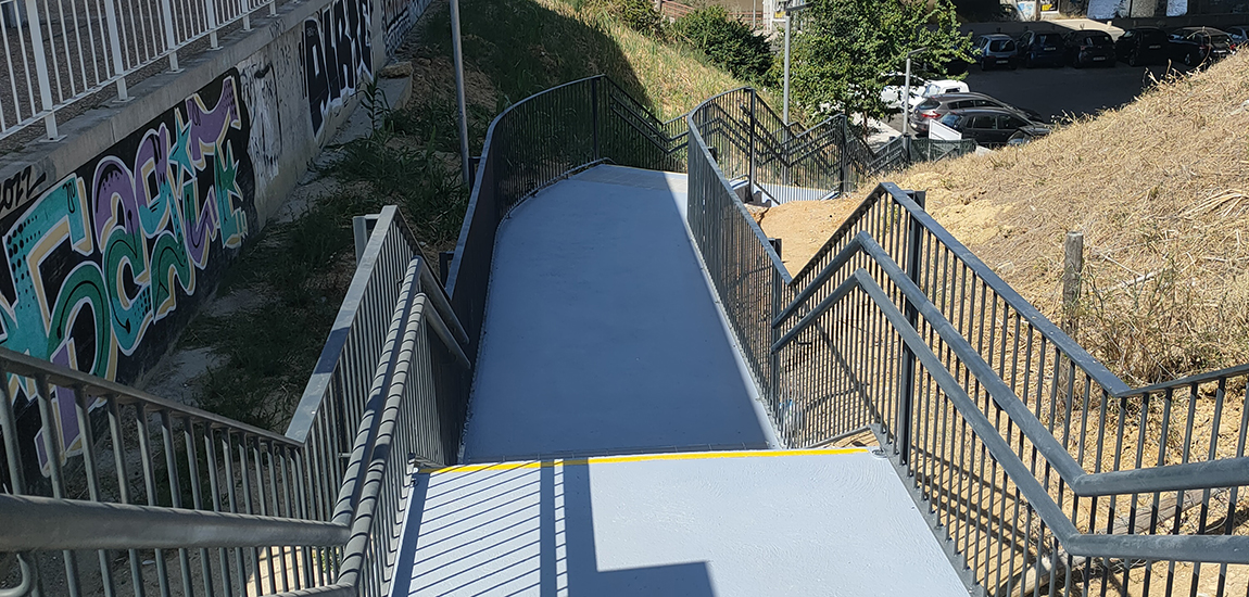 Para além destes trabalhos, foi construído um acesso pedonal, em escada, entre a plataforma da linha 4 e o parque de estacionamento público, localizado a nascente da estação.